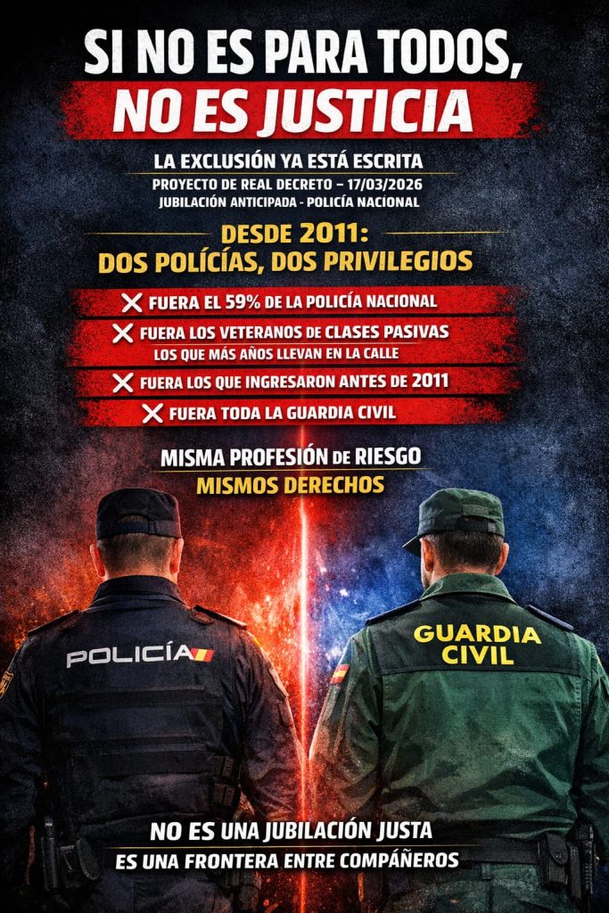 Pero una cosa es cumplir una sentencia en esos términos, y otra muy distinta es convertir ese cumplimiento en una norma parcial, venderlo como un avance histórico para toda la Policía Nacional y dejar fuera a la mayoría de quienes más años llevan sirviendo en la calle. Cumplir una sentencia no obliga a consolidar una discriminación interna dentro de la Policía Nacional.